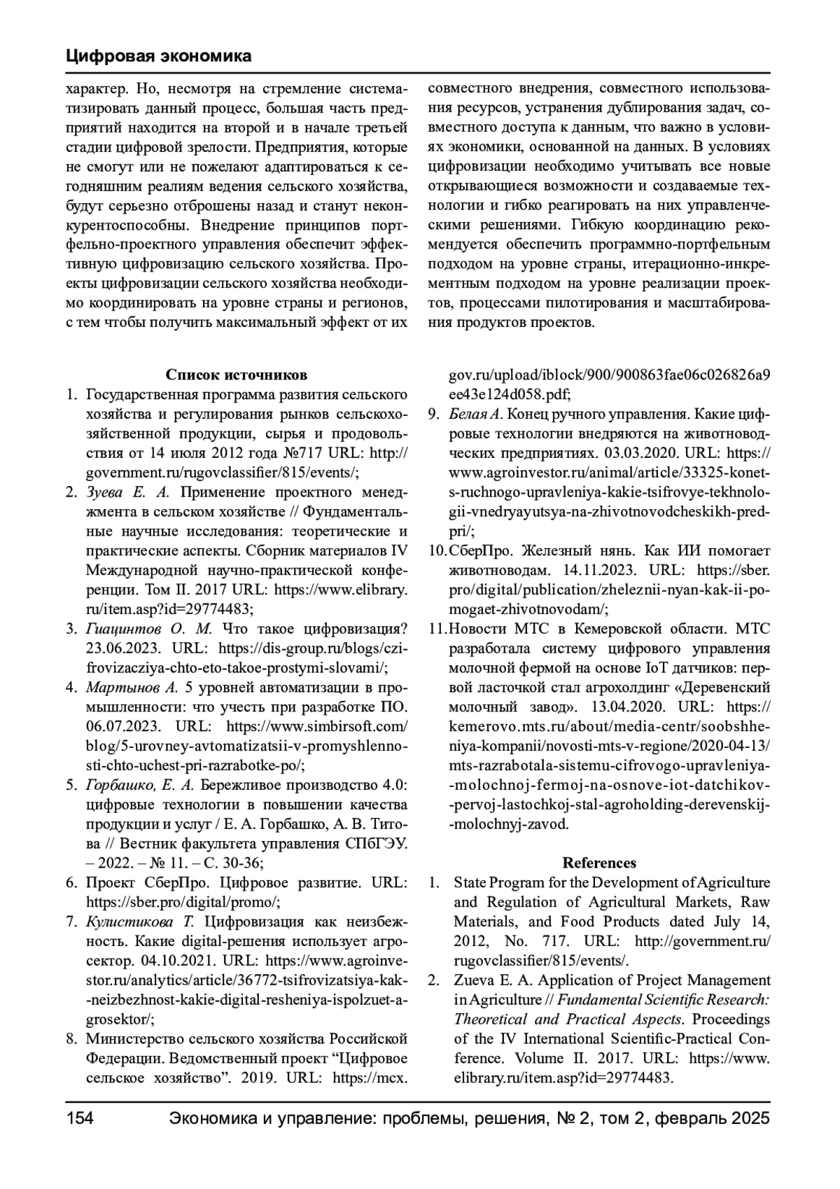 8. Министерство сельского хозяйства Российской Федерации. Ведомственный проект “Цифровое сельское хозяйство”. 2019. URL: https://mcx.gov.ru/upload/iblock/900/900863fae06c026826a9ee43e124d058.pdf.