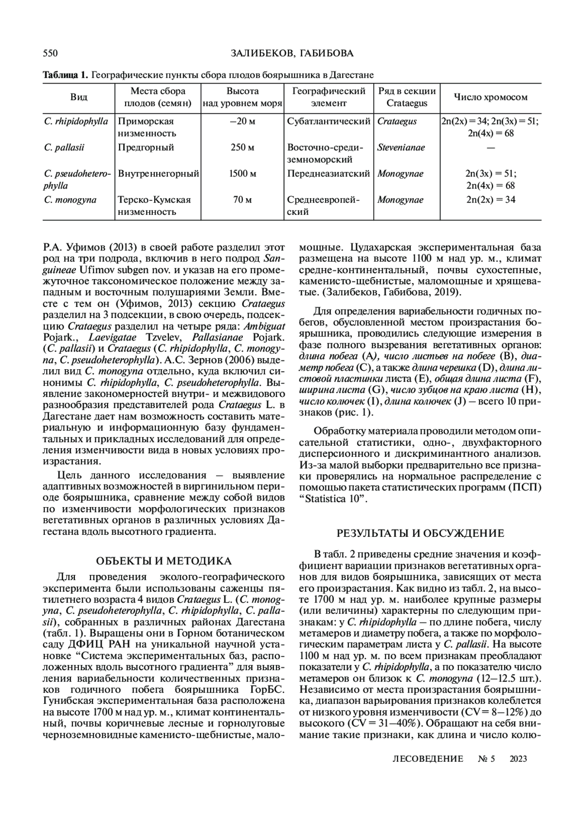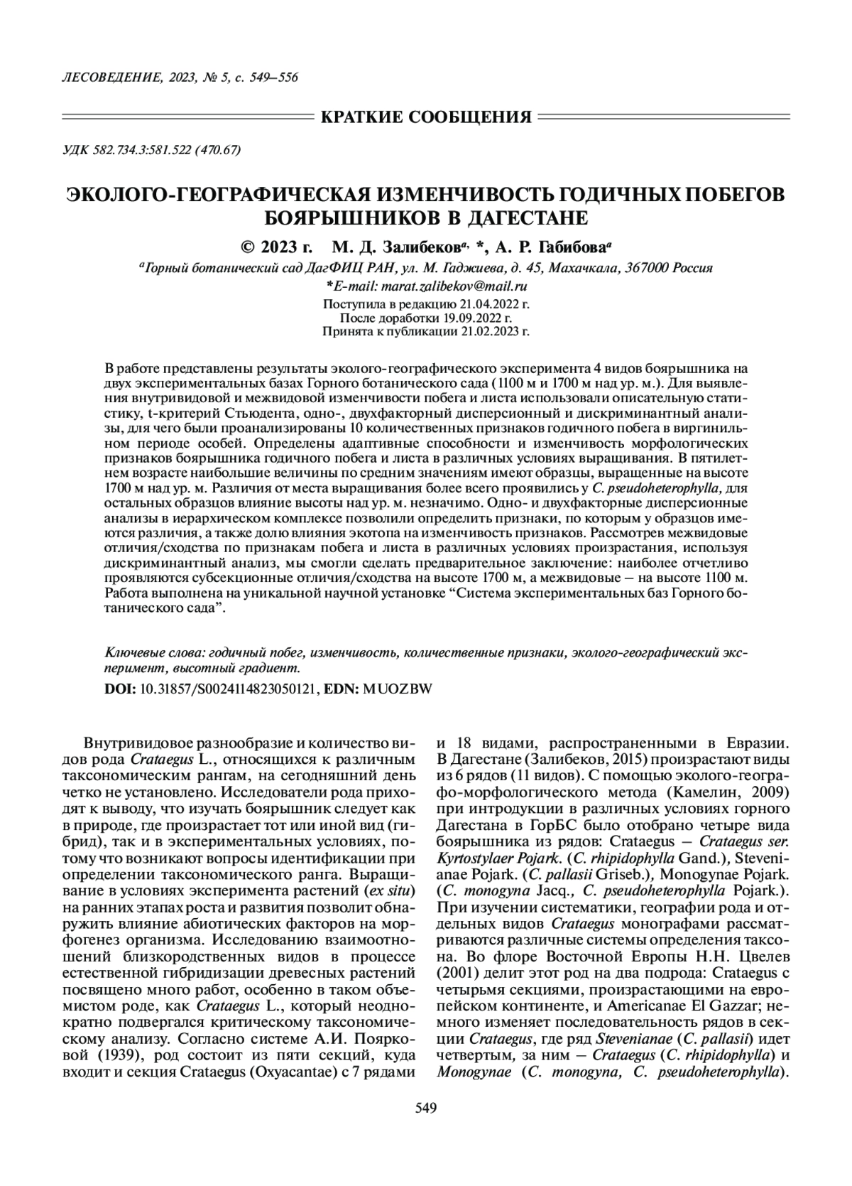 Статья: ЭКОЛОГО-ГЕОГРАФИЧЕСКАЯ ИЗМЕНЧИВОСТЬ ГОДИЧНЫХ ПОБЕГОВ БОЯРЫШНИКОВ В ДАГЕСТАНЕ (2023)
