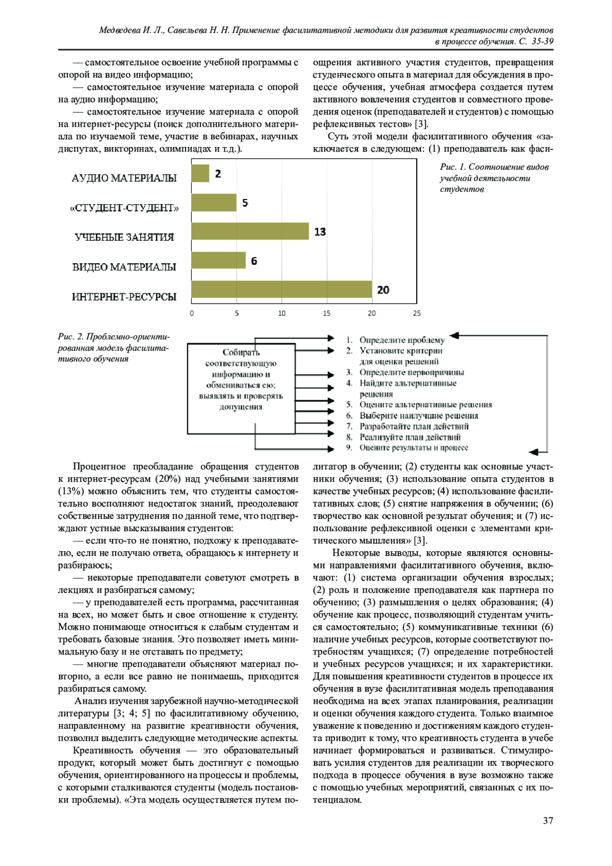 1. Савельева Н. Н., Орлова А.А., Степанова Ю.Ф. Методические аспекты реализации фасилитативного обучения в вузе // Вестник Сибирского института бизнеса и информационных технологий. 2022. Т.11. № 2 (29). С. 35-40.