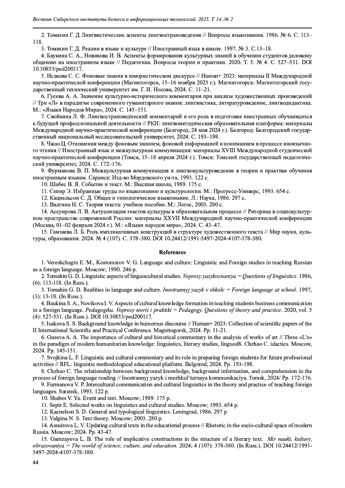 6. Гусева А. А. Значение культурно-исторического комментария при анализе художественных произведений // Три «Л» в парадигме современного гуманитарного знания: лингвистика, литературоведение, лингводидактика. М.: «Языки Народов Мира», 2024. С. 145-151.