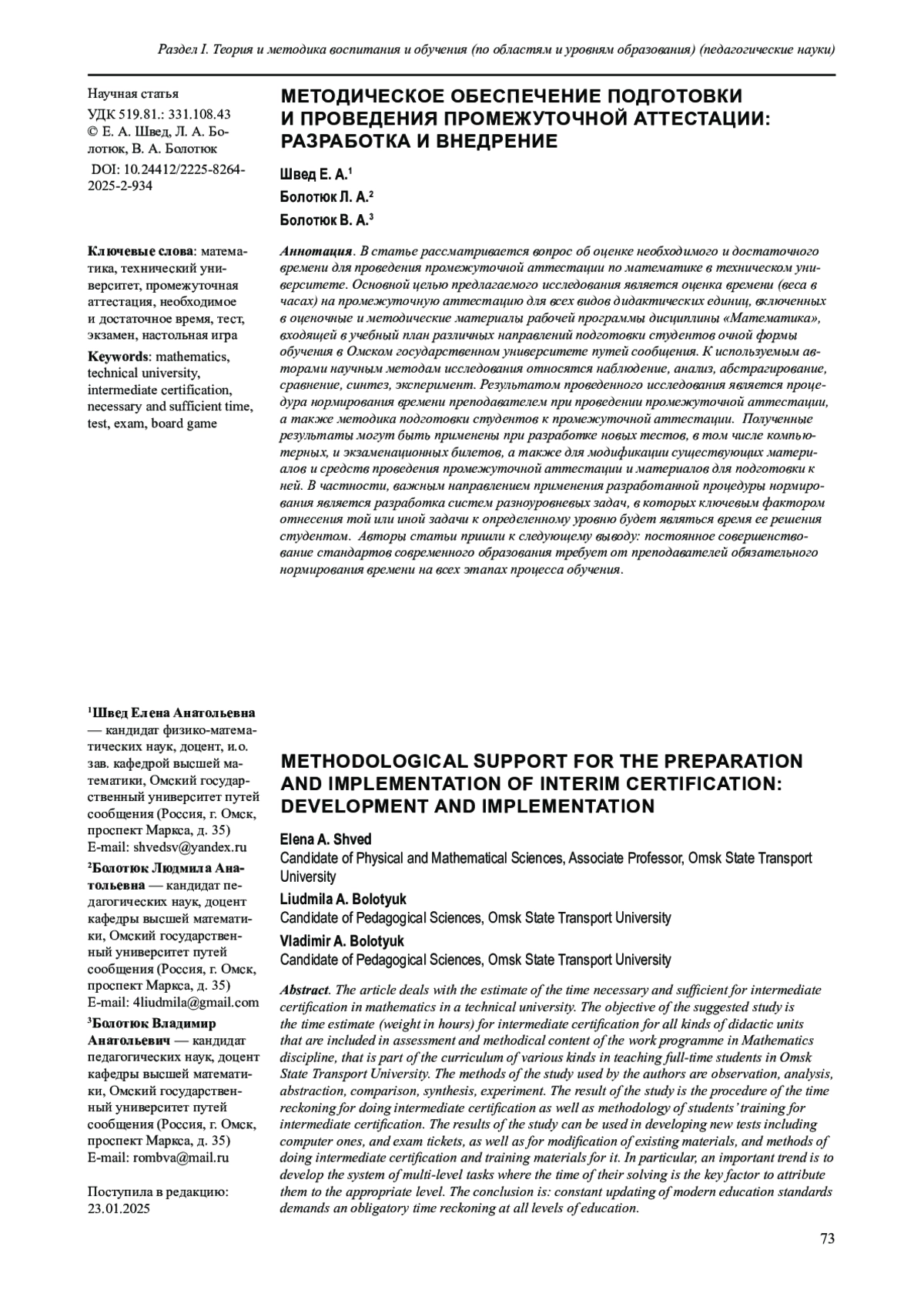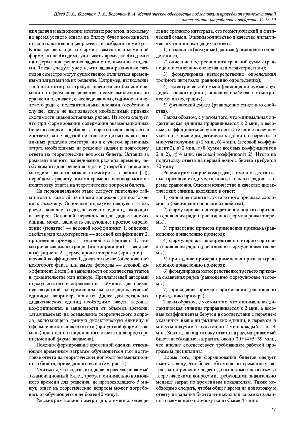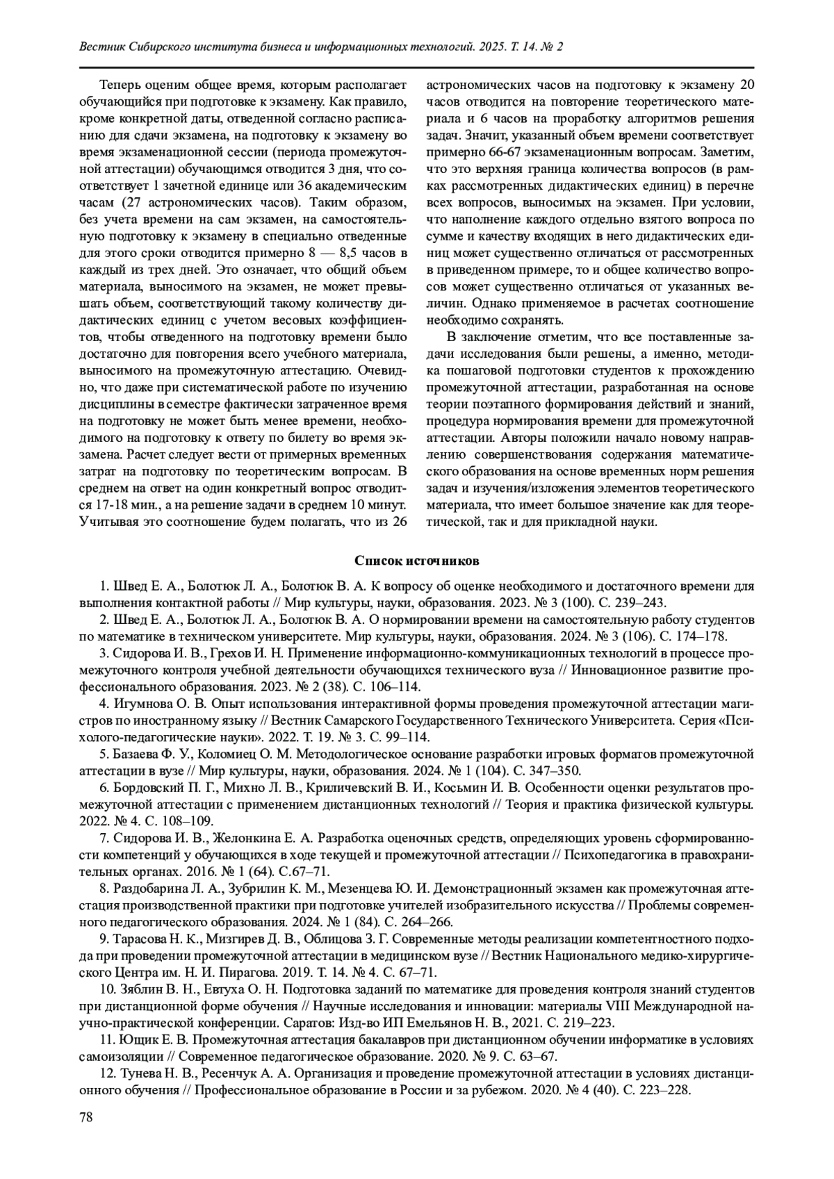 2. Швед Е. А., Болотюк Л. А., Болотюк В. А. О нормировании времени на самостоятельную работу студентов по математике в техническом университете. Мир культуры, науки, образования. 2024. № 3 (106). С. 174-178.