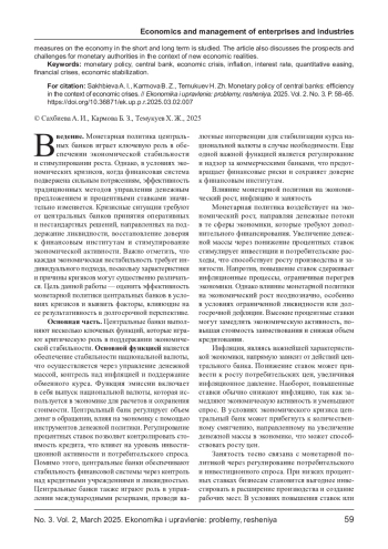 Статья посвящена анализу эффективности монетарной политики центральных банков в условиях экономических кризисов. Рассматриваются ключевые функции центральных банков, особенности их деятельности в условиях нестабильности на финансовых рынках. Особое внимание уделено анализу методов и инструментов, применяемых центральными банками для стабилизации экономики в кризисные периоды, таких как изменение процентных ставок, количественное смягчение и программы кредитования. На основе анализа исторических примеров исследуется влияние этих мер на экономику в краткосрочной и долгосрочной перспективе. В статье также обсуждаются перспективы и вызовы для монетарных властей в условиях новых экономических реалий.