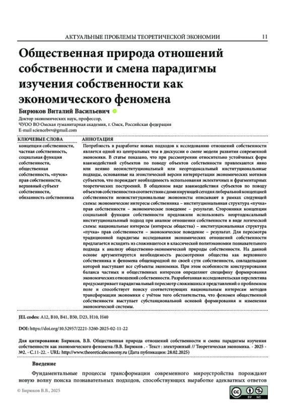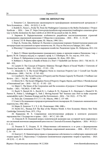 3. Бирюков В. Парадигмальные особенности разработки институциональных стратегий исследования современной экономики // Общество и экономика. - 2022. - №10. - С. 33-49. EDN: QFDVWP