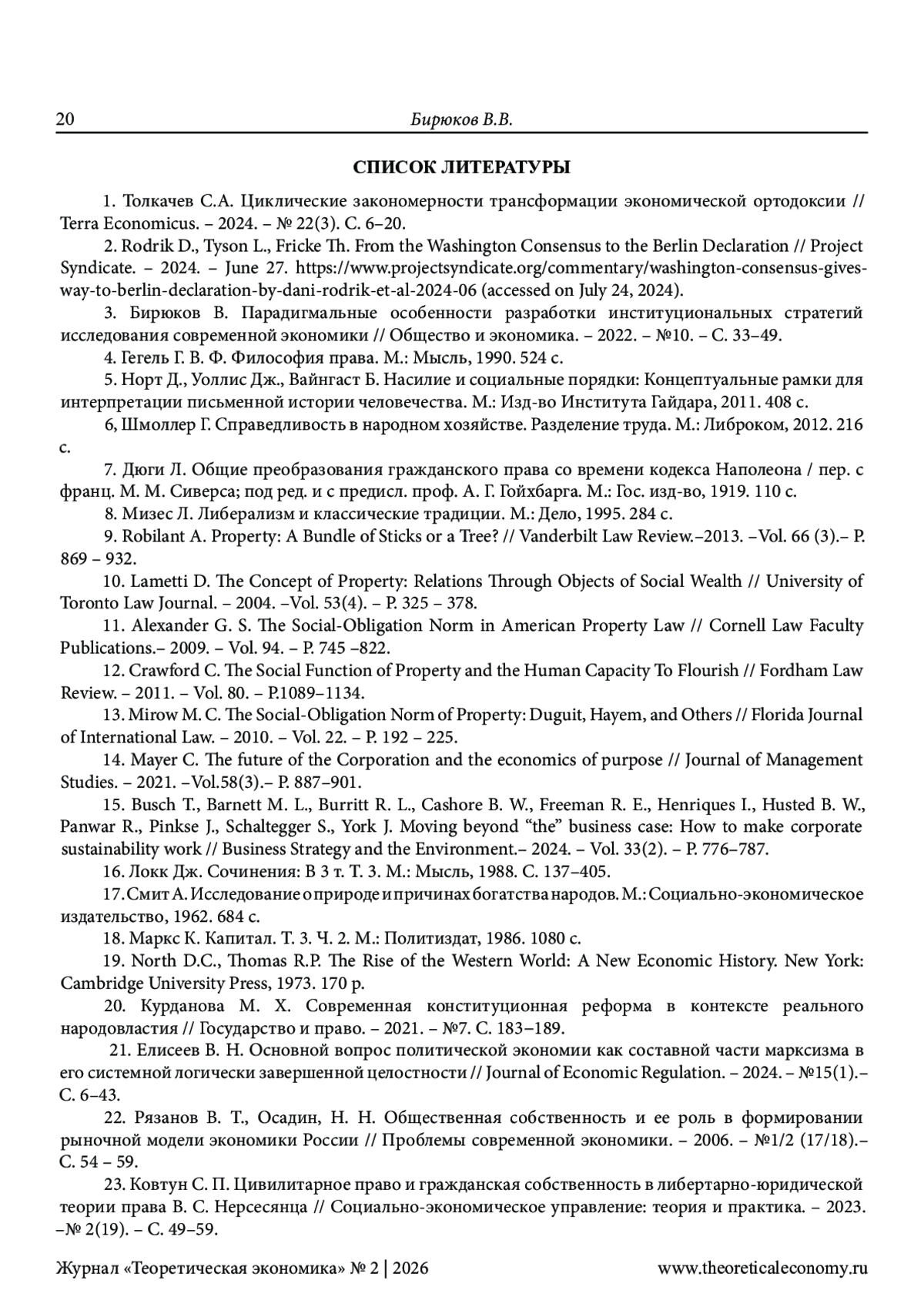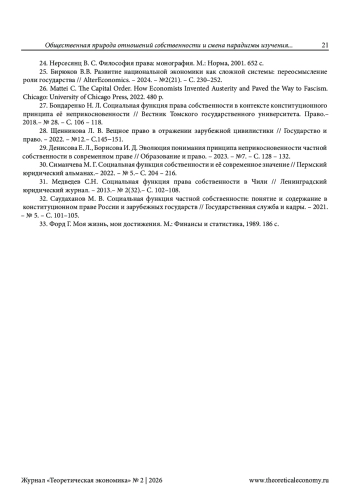 25. Бирюков В.В. Развитие национальной экономики как сложной системы: переосмысление роли государства // AlterEconomics. - 2024. - №2(21). - С. 230-252. EDN: PZWTCD