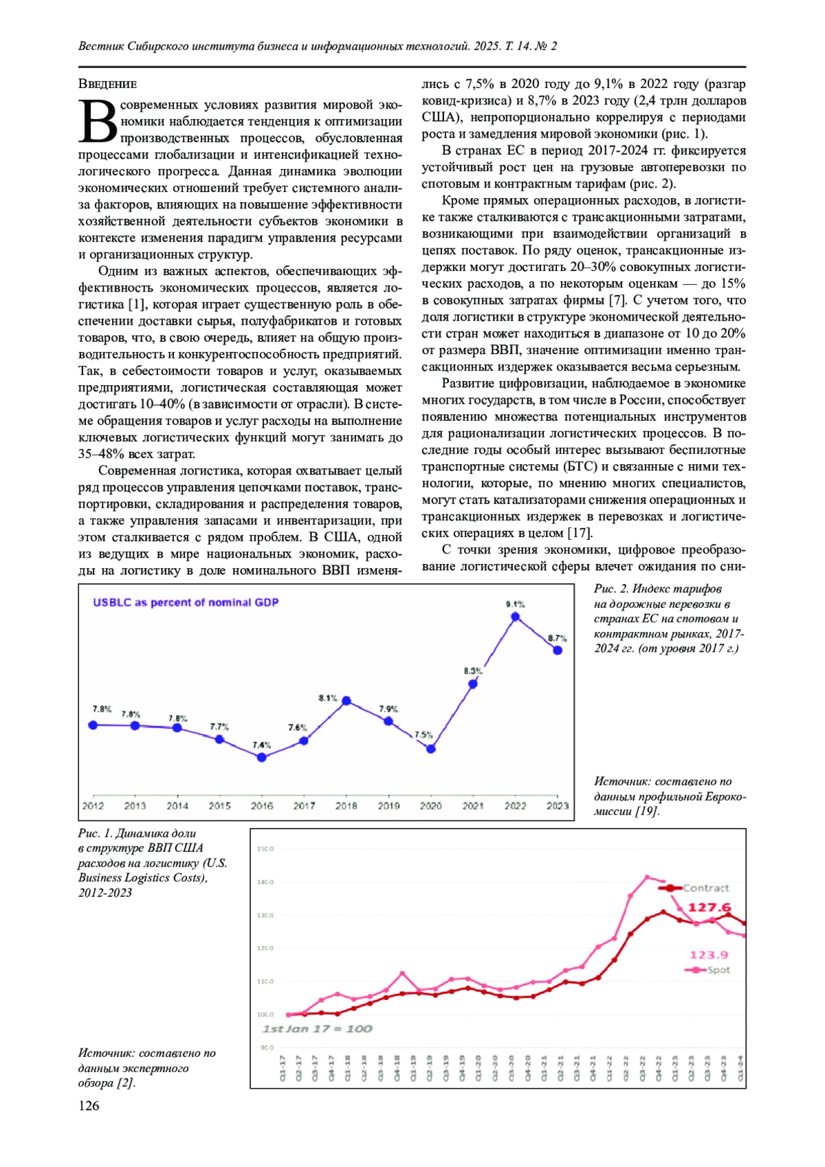 1. Бадокин О. В., Плетнева Н. Г. Потенциал снижения транспортно-логистических затрат в цепях поставок в условиях цифровизации // Вестник гражданских инженеров. 2023. № 6(101). С. 125-137.
