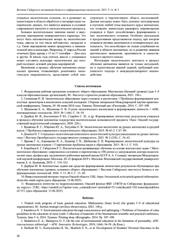 В статье рассматриваются вопросы организации процесса обучения математике с целью экологического воспитания обучающихся, что является составляющей личностных результатов, указанных в Федеральных образовательных программах основного общего и среднего общего образования. Математика, являясь одним из основных предметов в школьной программе, сосредоточена на развитии логического мышления, вычислительных навыков и других интеллектуальных способностей учащихся, а интеграция экологических аспектов в процесс обучения будет способствовать формированию у них ответственного отношения к природе. Цель работы — проанализировать содержание понятия «экологическое воспитание» и выделить приемы обучения математике, направление на достижение личностных результатов экологической направленности. Научная новизна исследования заключается в том, что обоснована необходимость использования в процессе обучения математике комплекса специальных приемов, среди которых решение контекстных задач/кейсов с экологическим сюжетом; составление заданий учащимися на основе справочно-информационного материала о состоянии окружающей среды; проведение практических работ по математике, направленных на бережное отношение к природе; проведение интегрированных уроков экологической направленности; выполнение межпредметных проектов по отдельным экологическим проблемам; проведение внеклассных мероприятий по математике, содержащих задания экологического характера; проведение социально-значимых акций с математическим обоснованием их результатов, которые будут способствовать экологическому воспитанию учащихся за счет возможностей учебного предмета. В статье приводятся примеры реализации указанных приемов в процессе обучения математике. Полученные результаты могут быть использованы в практике работы учителей математики.