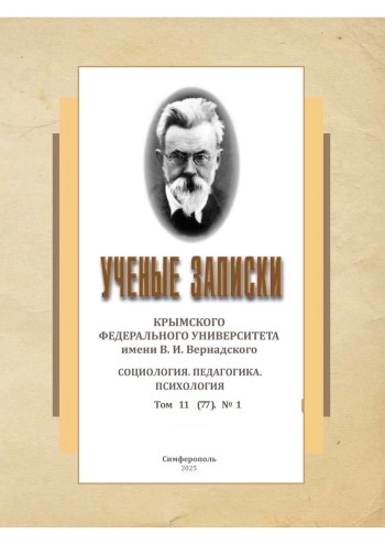 Журнал: УЧЕНЫЕ ЗАПИСКИ КРЫМСКОГО ФЕДЕРАЛЬНОГО УНИВЕРСИТЕТА ИМЕНИ В. И. ВЕРНАДСКОГО. СОЦИОЛОГИЯ. ПЕДАГОГИКА. ПСИХОЛОГИЯ