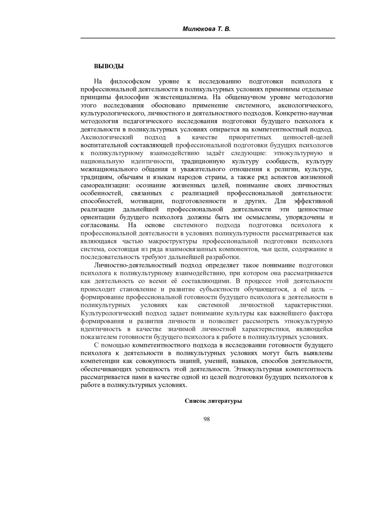 Актуальность исследования подготовки будущих психологов к работе в поликультурных условиях обуславливается особенностями современного полиэтничного российского общества. Перед системой образования стоят задачи по обучению специалистов, способных выполнять профессиональную деятельность.