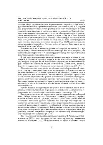 В статье исследуется специфика характера сибиряка, представленная и осмысленная в рассказах и повестях В. Астафьева. Актуальность исследования обусловлена вниманием современного литературоведения к историософской составляющей проблематике русской прозы, необходимостью изучения произведений русской литературы ХХ в. в ее эволюции, наиболее ярких проявлениях и оценках. Целью данного исследования является определение особенностей созданного в рассказах и повестях В. Астафьева характера сибиряка в качестве варианта русского национального характера. С помощью биографического, историко-функционального и текстологического методов анализируются рассказы В. Астафьева «Гражданский человек», «Сибиряк», повести «Перевал», «Стародуб», публицистические произведения писателя. Рассматриваются различные взгляды на особенности русского национального характера. В результате проведенного анализа установлено, что в рассказах и повестях В. Астафьева создан яркий образ героя-сибиряка, храброго воина, готового к самопожертвованию, закаленного в суровых условиях жизни Сибири, трудолюбивого, знающего и чувствующего природу. Редактирование Астафьевым его первого рассказа шло по пути акцентирования сибирского происхождения его главного героя. Доказано, что астафьевский сибиряк заключает в себе коренные свойства русского национального характера, дополненные качествами, связанными с особыми этногеографическими обстоятельствами истории и современности Сибири. Сделаны выводы о том, что астафьевский сибиряк является вариантом русского национального характера, указано, что в последующем зрелом и позднем творчестве В. Астафьева усилено внимание писателя к судьбе героев-сибиряков.