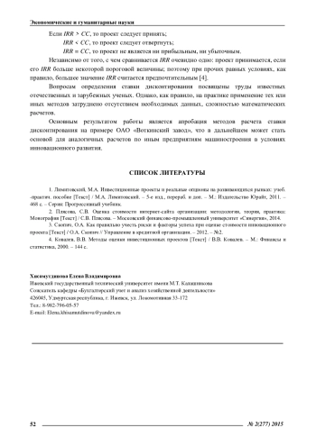 3. Скопич, О.А. Как правильно учесть риски и факторы успеха при оценке стоимости инновационного проекта [Текст] / О.А. Скопич // Управление в кредитной организации. - 2012. - №2.