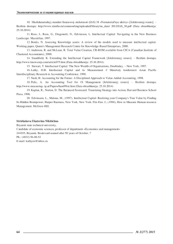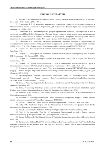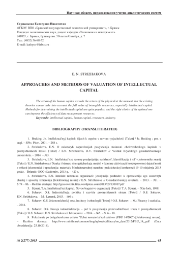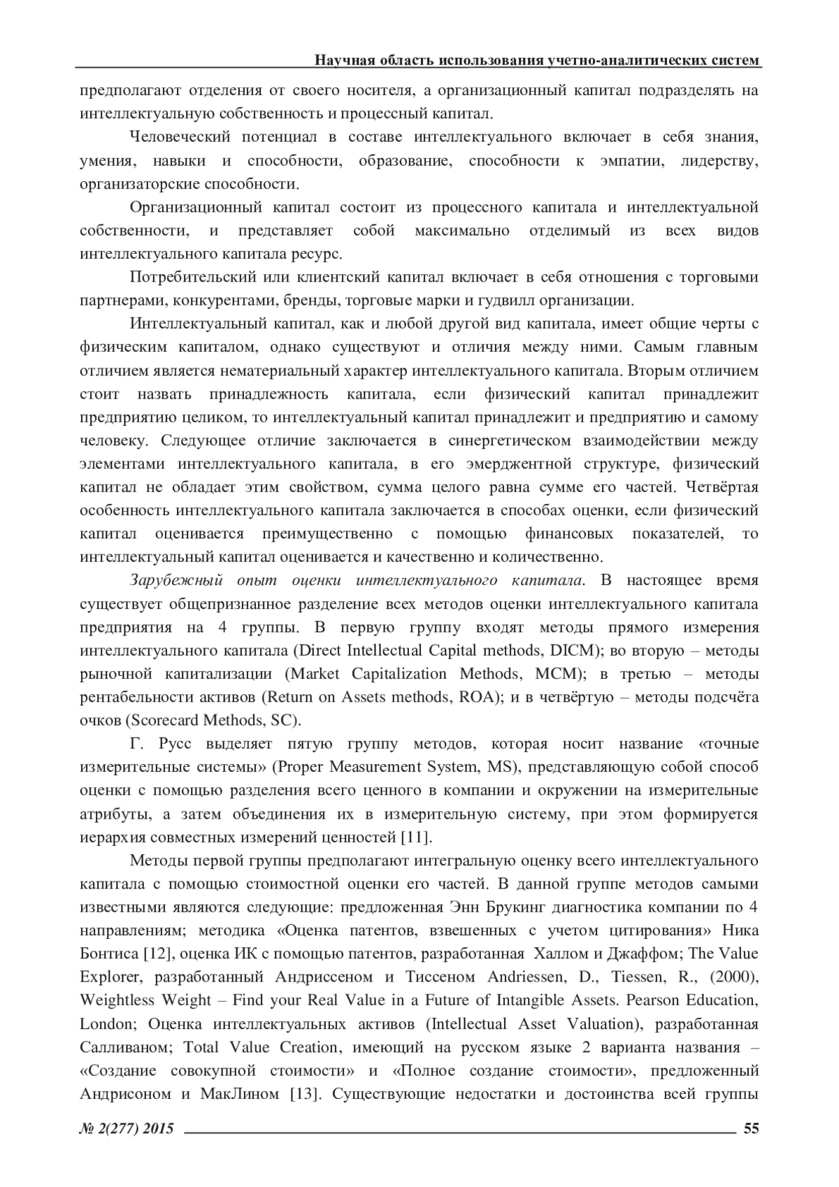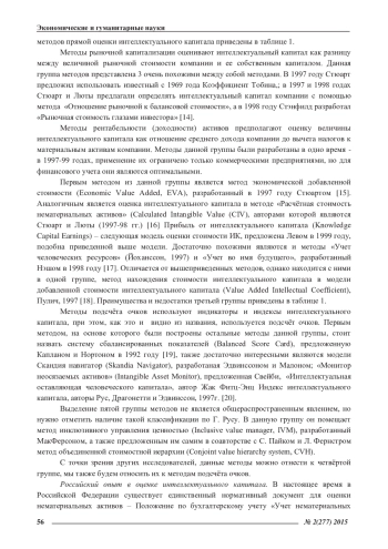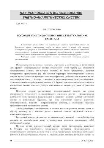 СТРИЖАКОВА Е. Н. ПОДХОДЫ И МЕТОДЫ ОЦЕНКИ ИНТЕЛЛЕКТУАЛЬНОГО КАПИТАЛА // ЭКОНОМИЧЕСКИЕ И ГУМАНИТАРНЫЕ НАУКИ. 2015. № 2 (277)
