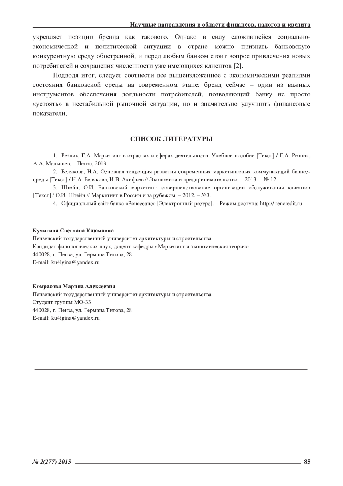3. Штейн, О.И. Банковский маркетинг: совершенствование организации обслуживания клиентов /О.И. Штейн//Маркетинг в России и за рубежом. -2012. -№3. EDN: PDGVXL