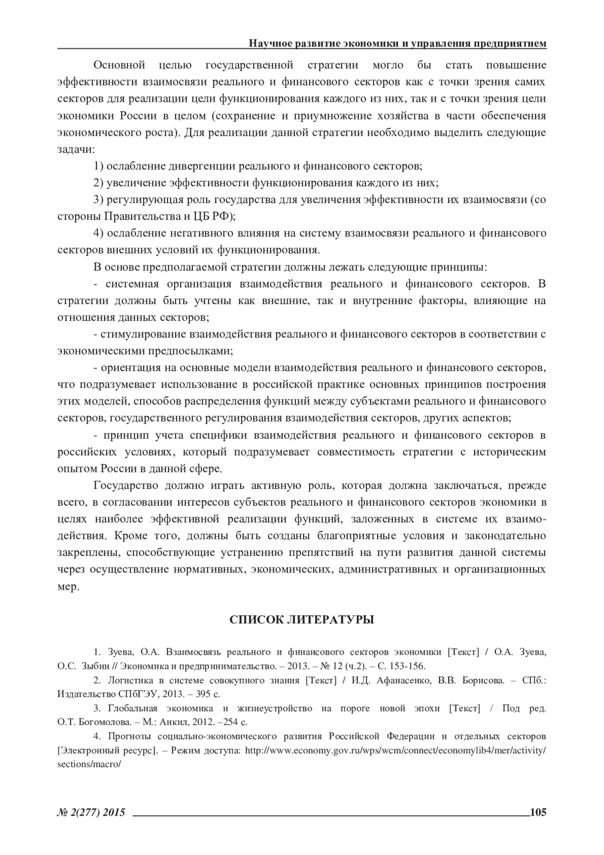 1. Зуева, О.А. Взаимосвязь реального и финансового секторов экономики [Текст] / О.А. Зуева, О.С. Зыбин // Экономика и предпринимательство. - 2013. - № 12 (ч.2). - С. 153-156. EDN: RQBKMX