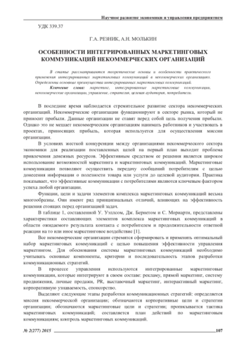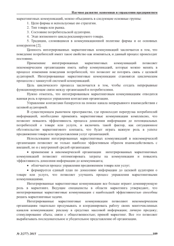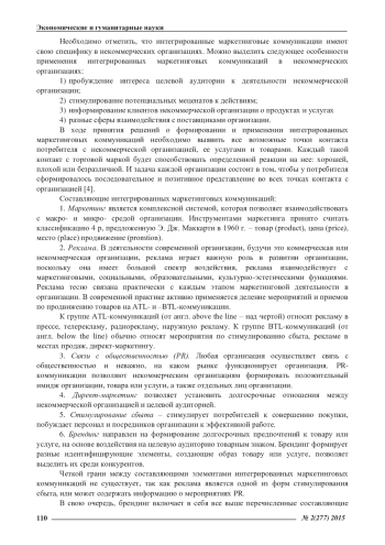 В статье рассматриваются теоретические основы и особенности практического применения интегрированных маркетинговых коммуникаций в некоммерческих организациях. Определенны основные преимущества интегрированных маркетинговых коммуникаций