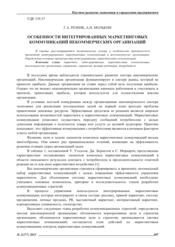 3. алышев, А.А. Маркетинг в некоммерческой организации на примере профкомов [Текст] / А.А. Малышев, А.Н. Молькин // Экономика и предпринимательство. - 2014. - №4. - ч.2. - С. 704-707. EDN: SZABOB