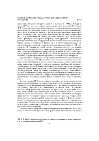 9. Челтыгмашева Л. В. Этнопоэтика в произведениях хакасской детской прозы конца ХХ - начала ХХ1 вв. // Мир науки, культуры, образования. 2018. № 2(69). С. 631-634. Текст: непосредственный. EDN: XNBJJR