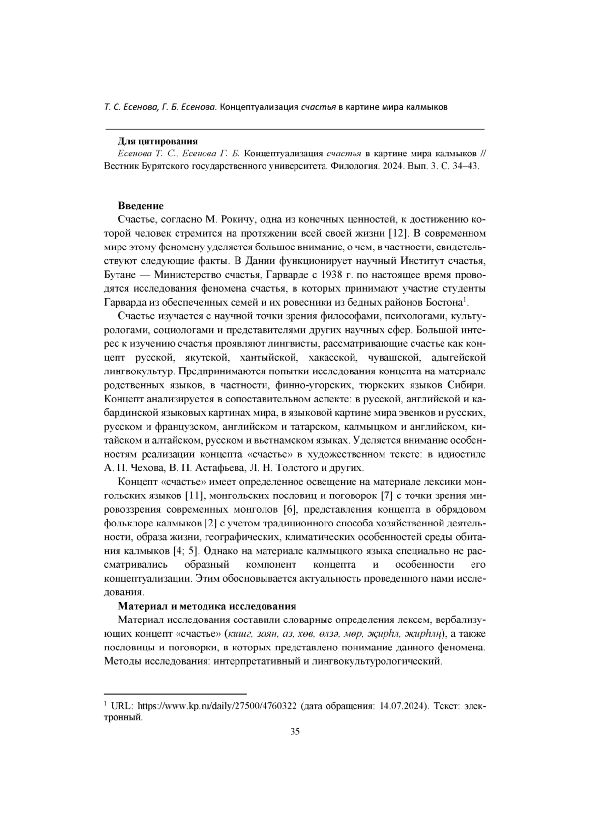 4. Есенова Т. С. Концепт “счастье” в менталитете калмыков // Народы Калмыкии: проблемы национальной идентичности и менталитета / ответственный редактор А. Н. Овшинов. Элиста: КалмГУ, КТИ (филиал) ПГТУ, 2005. С. 66-73. Текст: непосредственный. EDN: VVLLCN