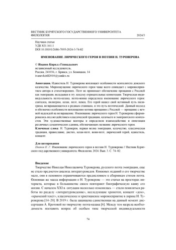 ИВАНОВ К. Г. ИМЕНОВАНИЕ ЛИРИЧЕСКОГО ГЕРОЯ В ПОЭЗИИ Н. ТУРОВЕРОВА // ВЕСТНИК БУРЯТСКОГО ГОСУДАРСТВЕННОГО УНИВЕРСИТЕТА. ФИЛОЛОГИЯ. 2024. № 3