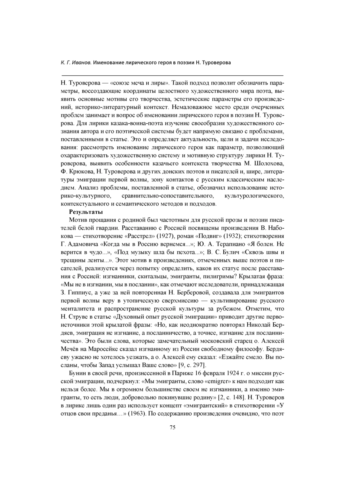Ключевые фразы: н туроверов, первая волна эмиграции, казачество, классическая традиция, православие, дистих, казак-поэт, воин-поэт, лирический герой, ИДИОСТИЛЬ, концепт
