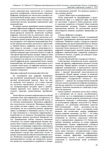 Статья посвящена актуальным вопросам трансформации в условиях перехода к цифровизации и соответствующего формирования цифровых систем, развития искусственного интеллекта и внедрения информационных технологий. В статье рассматривается эволюция цифровой экономики, а также анализируются изменения в российской экономической системе, вызванные процессами цифровизации. Авторами, рассмотрены и систематизированы виды и типы цифрового взаимодействия, определяющих экономическую природу сущностных характеристик участников цифровых отношений. Определены факторы, влияющие на процессы динамики цифровой трансформации. Оценивая цифровизацию экономики, акцент делается на цифровое взаимодействие и цифровую трансформацию экономической системы. Цифровое взаимодействие — это эволюция рыночного взаимодействия, основанное на сегментирование субъектов цифровой экономики. В статье рассмотрены наиболее важные аспекты практики развития цифровой трансформации. Динамика цифровой трансформации определяется факторами повышения цифровой грамотности, формирования цифровых стандартов и государственной поддержкой процессов цифровизации. Эффектом цифровой трансформации является не только повышение конкурентоспособности компаний, но появление таких категорий как электронные услуги, цифровые деньги и экосистемы. В заключении сформирован вывод о направлениях модернизации подходов к государственному и корпоративному управлению процессами цифровизации.