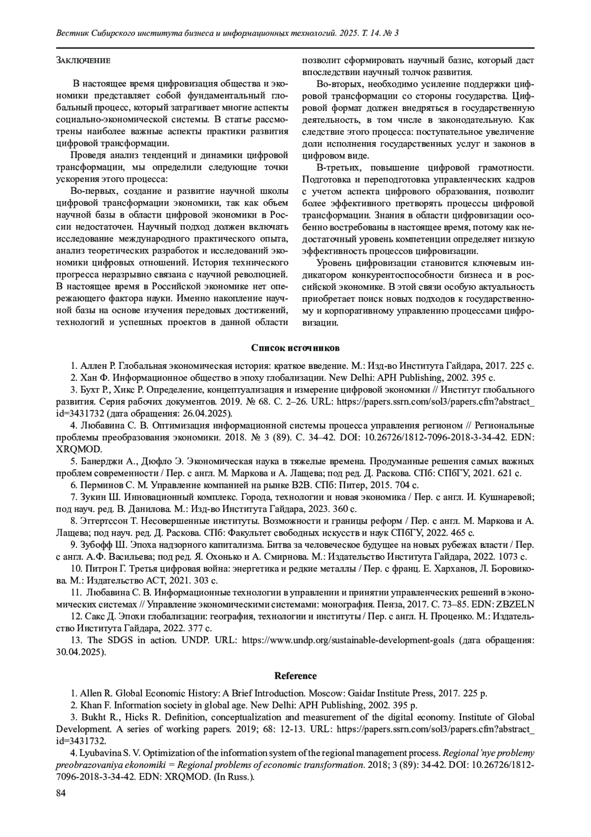 3. Бухт Р., Хикс Р. Определение, концептуализация и измерение цифровой экономики // Институт глобального развития. Серия рабочих документов. 2019. № 68. С. 2-26. URL: https://papers.ssrn.com/sol3/papers.cfm?abstract_id=3431732 (дата обращения: 26.04.2025).