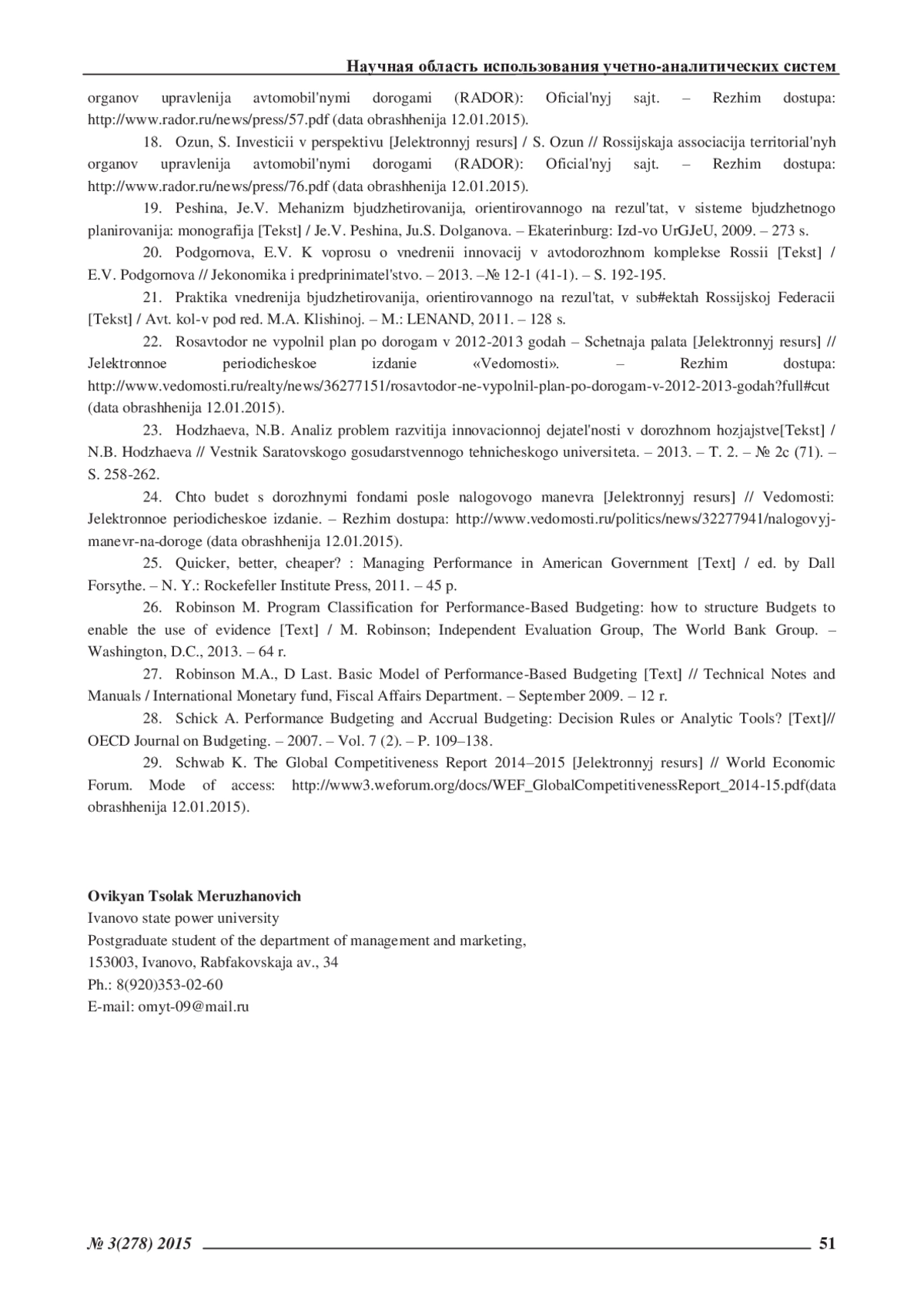 13. Маджидов, Т.И. Бюджетирование, ориентированное на результат [Текст] / Т.И. Маджидов // Аудит и финансовый анализ. - 2011. - № 2. - С. 4-7.
