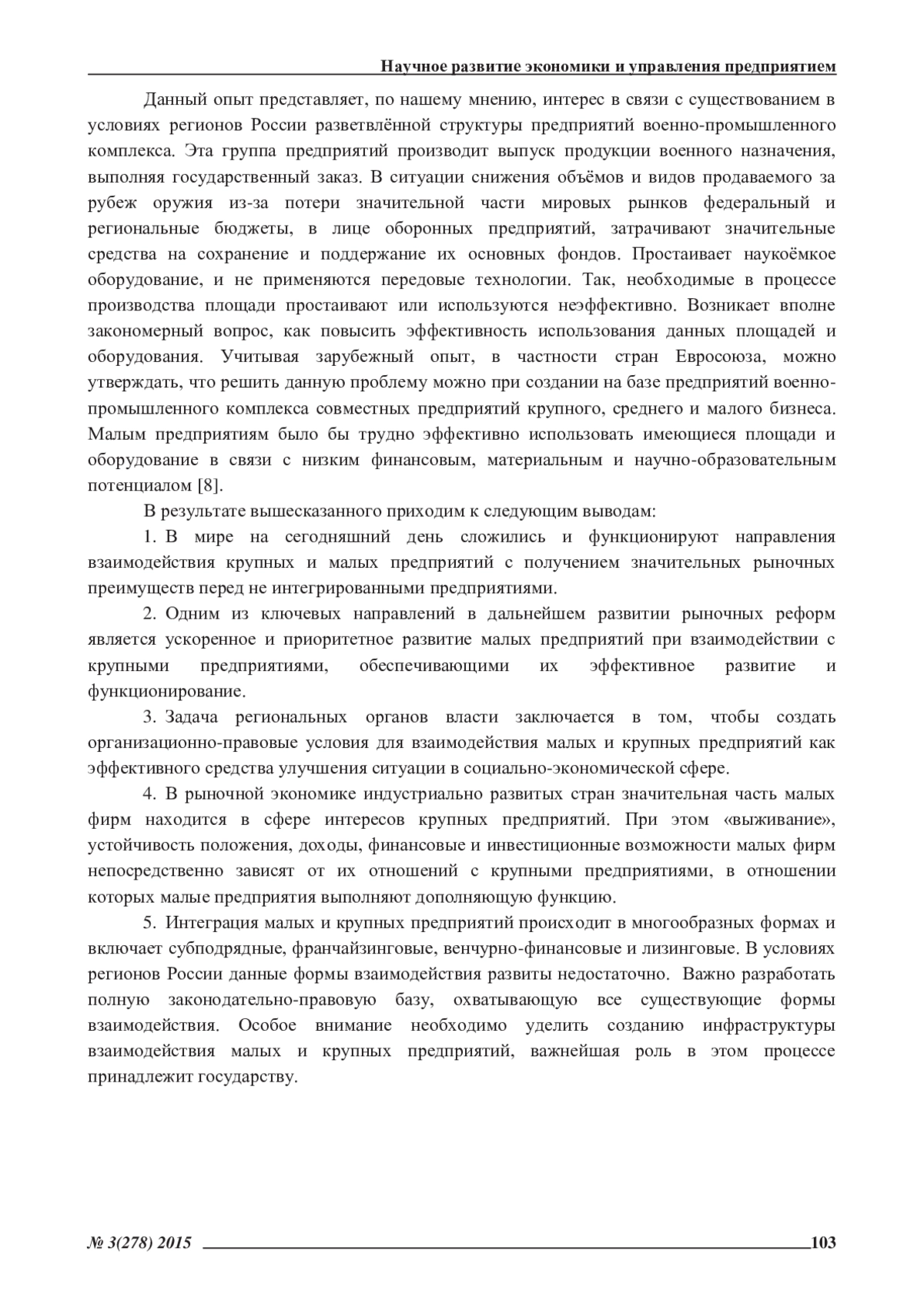 Предметом статьи является интеграция предпринимательских структур, способствующая развитию малых предприятий. В статье систематизированы и оценены основные виды и формы взаимодействия малых и крупных предприятий. В контексте развития малых предприятий на основе повышения их дополняющей роли во взаимодействии с крупными предприятиями, важно рассмотреть проблему эффективного использования имеющегося в стране научно-исследовательского потенциала, концентрации его на решении важнейших научно-технических задач, создании принципиально новой техники. Результативность функционирования малых предприятий и всей интегрированной структуры, будет напрямую связана с интересами и потребностями местного сообщества, поскольку механизм активизации системы взаимодействия построен на основе соблюдения условия сотрудничества власти, населения и предпринимателей. Главная цель при этом заключается в том, чтобы создать условия для эффективного взаимодействия предпринимательских структур и управления развитием малых и крупных предприятий