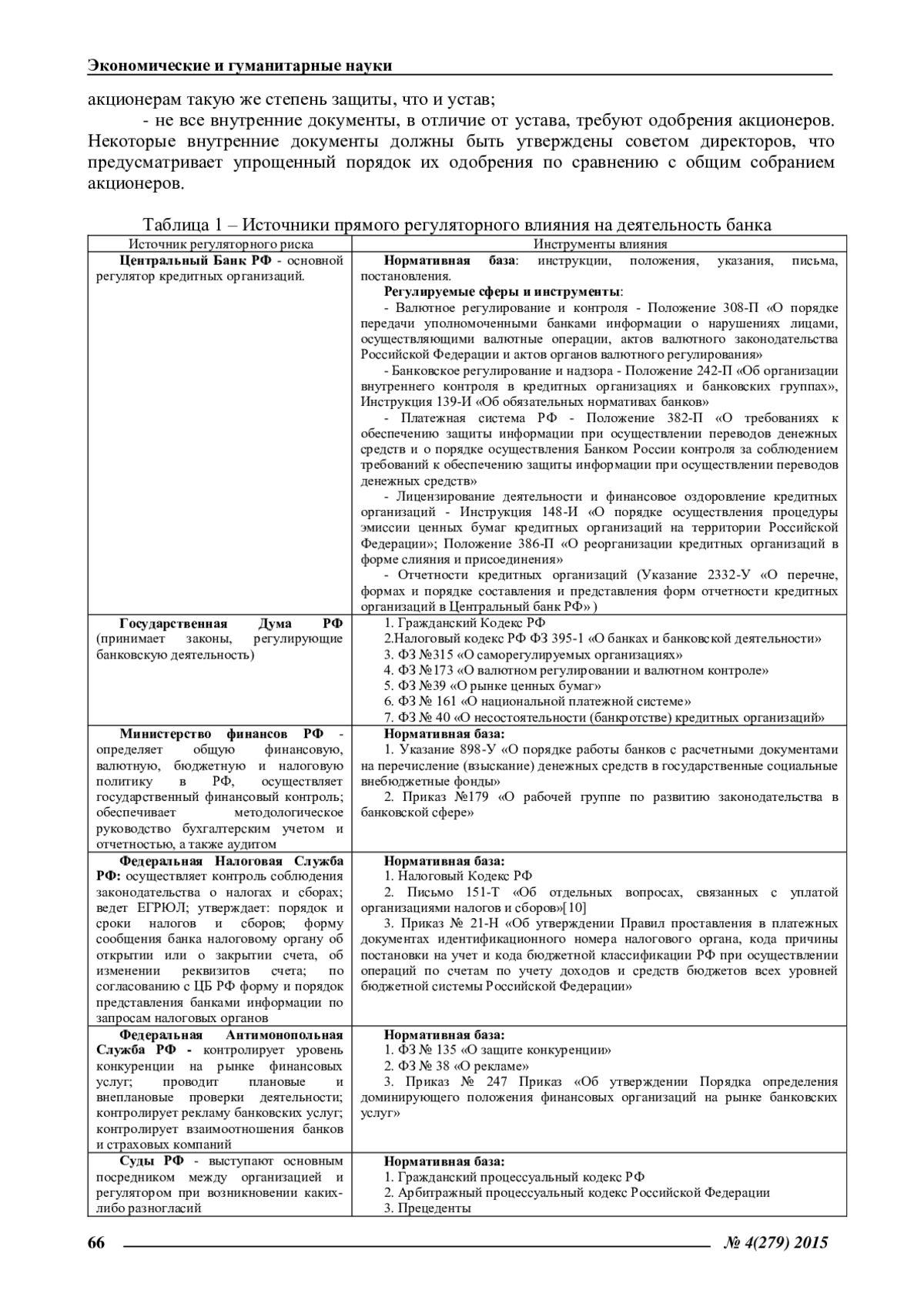 Статья: РАЗВИТИЕ НОРМАТИВНОЙ БАЗЫ ДЕЯТЕЛЬНОСТИ КОРПОРАЦИЙ КАК ОСНОВЫ УПРАВЛЕНИЯ РЕГУЛЯТОРНЫМ РИСКОМ(НА ПРИМЕРЕ КОМПАНИЙ БАНКОВСКОЙ СФЕРЫ) (2015)