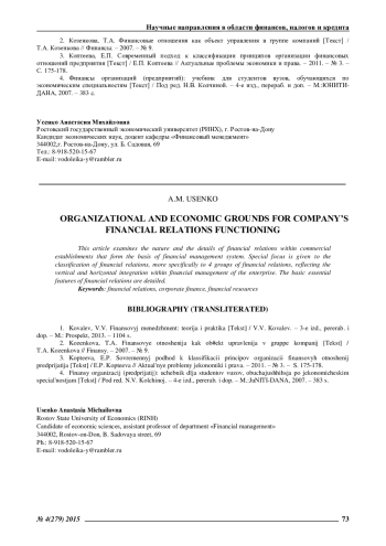 2. Козенкова, Т.А. Финансовые отношения как объект управления в группе компаний [Текст] / Т.А. Козенкова // Финансы. - 2007. - № 9. EDN: IBQIGF