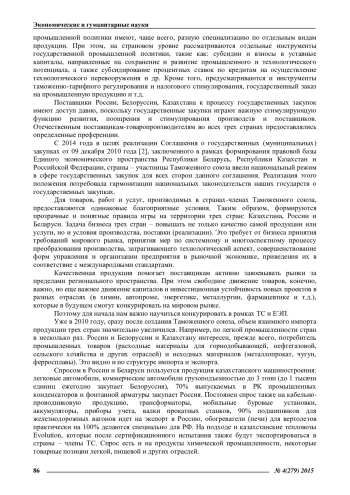 В статье рассматриваются проблемы и возможные решения по дальнейшему развитию Таможенного Союза по унификации законодательств стран в сфере развития системы государственных закупок в Республике Беларусь, Республике Казахстан и Российской Федерации. Автором проведен анализ национальных законодательств, рассмотрен вопрос о необходимости проведения между странами согласованной отраслевой промышленной политики, направленной на: расширение производственной кооперации, исключение создания дублирующих производств. Именно в Программах стратегического планирования странового уровня отмечается высокая степень совпадения приоритетных отраслей государств, хотя направления промышленной политики имеют, чаще всего, разную специализацию по отдельным видам продукции