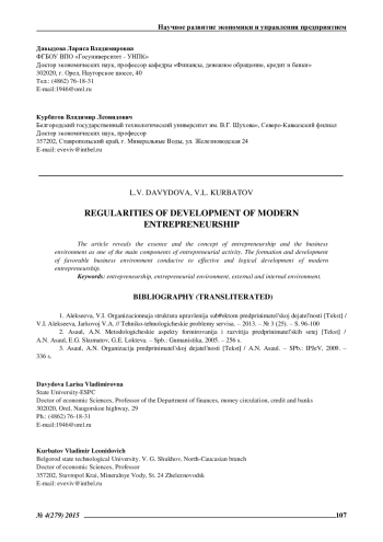 Статья: ЗАКОНОМЕРНОСТИ РАЗВИТИЯ СОВРЕМЕННОГО ПРЕДПРИНИМАТЕЛЬСТВА (2015)