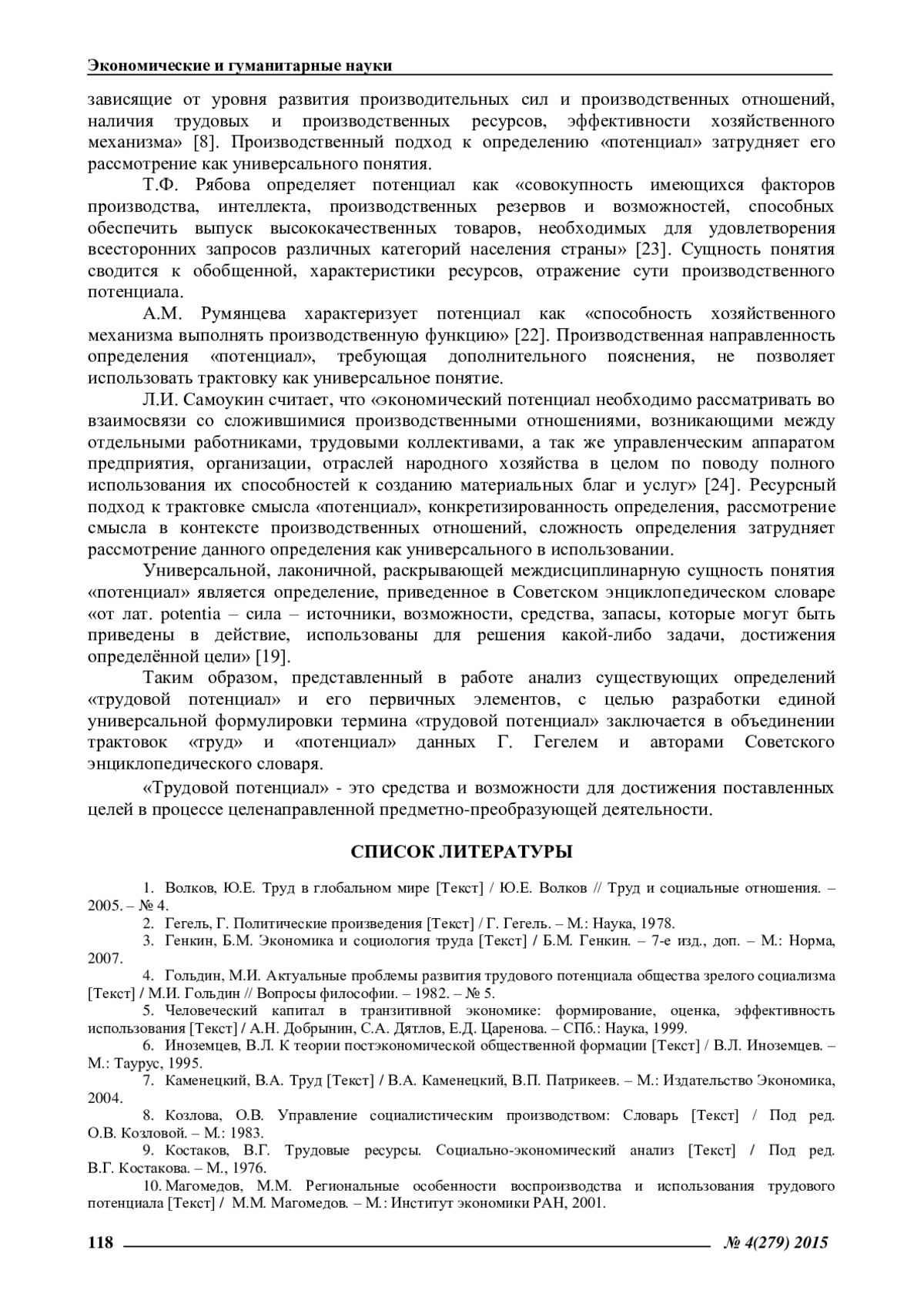 20. Радько, С.Г. Трудовой потенциал как социально-экономическая категория /С.Г. Радько. -СПб.: филиал издательства «Просвещение», 2010. EDN: YAIMYC