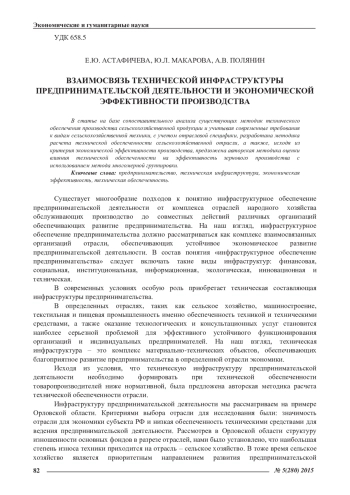 Статья: ВЗАИМОСВЯЗЬ ТЕХНИЧЕСКОЙ ИНФРАСТРУКТУРЫ ПРЕДПРИНИМАТЕЛЬСКОЙ ДЕЯТЕЛЬНОСТИ И ЭКОНОМИЧЕСКОЙ ЭФФЕКТИВНОСТИ ПРОИЗВОДСТВА (2015)