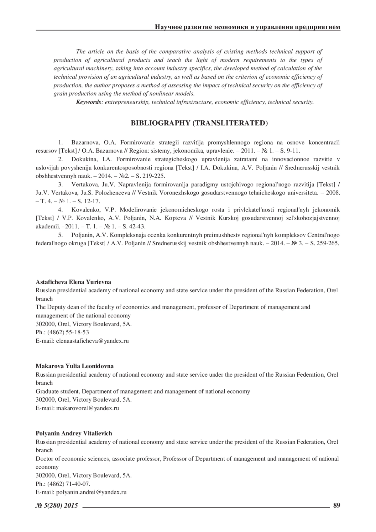 АСТАФИЧЕВА Е. Ю., МАКАРОВА Ю. Л., ПОЛЯНИН А. В. ВЗАИМОСВЯЗЬ ТЕХНИЧЕСКОЙ ИНФРАСТРУКТУРЫ ПРЕДПРИНИМАТЕЛЬСКОЙ ДЕЯТЕЛЬНОСТИ И ЭКОНОМИЧЕСКОЙ ЭФФЕКТИВНОСТИ ПРОИЗВОДСТВА // ЭКОНОМИЧЕСКИЕ И ГУМАНИТАРНЫЕ НАУКИ. 2015. № 5 (280)