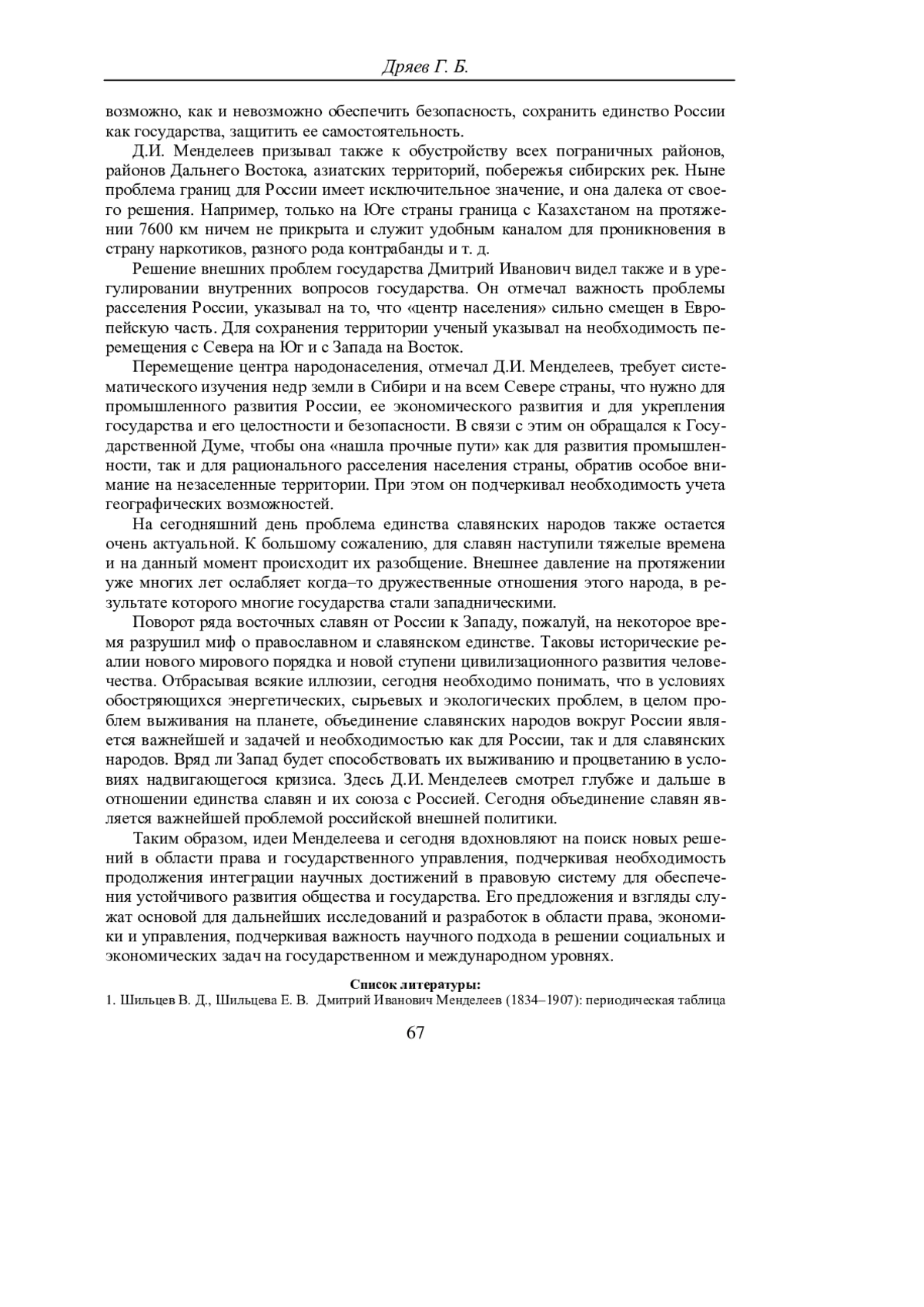 1. Шильцев В. Д., Шильцева Е. В. Дмитрий Иванович Менделеев (1834-1907): периодическая таблица и не только // Вестник Тюменского государственного университета. Гуманитарные исследования. HUMANITATES. - 2021. - № 2 (26). - Т. 7. - С. 222-248. - Текст: непосредственный. EDN: PCLPGB