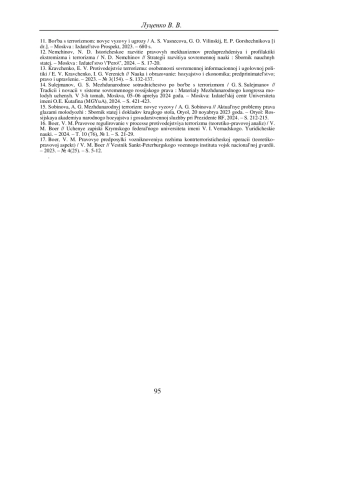 11. Борьба с терроризмом: новые вызовы и угрозы / А. С. Васнецова, Г. О. Вилинский, Е. П. Горшечникова [и др.]. - Москва: Издательство Проспект, 2023. - 680 с. EDN: EVOUQM