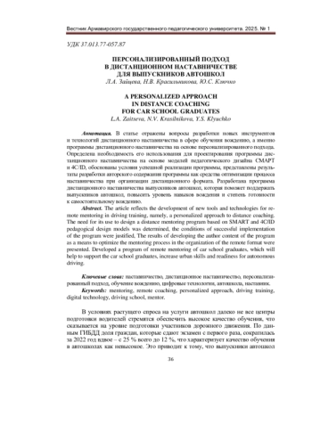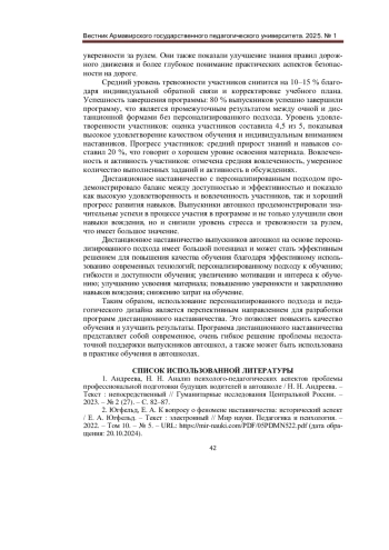 Статья: ПЕРСОНАЛИЗИРОВАННЫЙ ПОДХОД В ДИСТАНЦИОННОМ НАСТАВНИЧЕСТВЕ ДЛЯ ВЫПУСКНИКОВ АВТОШКОЛ (2025)