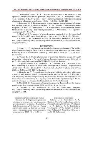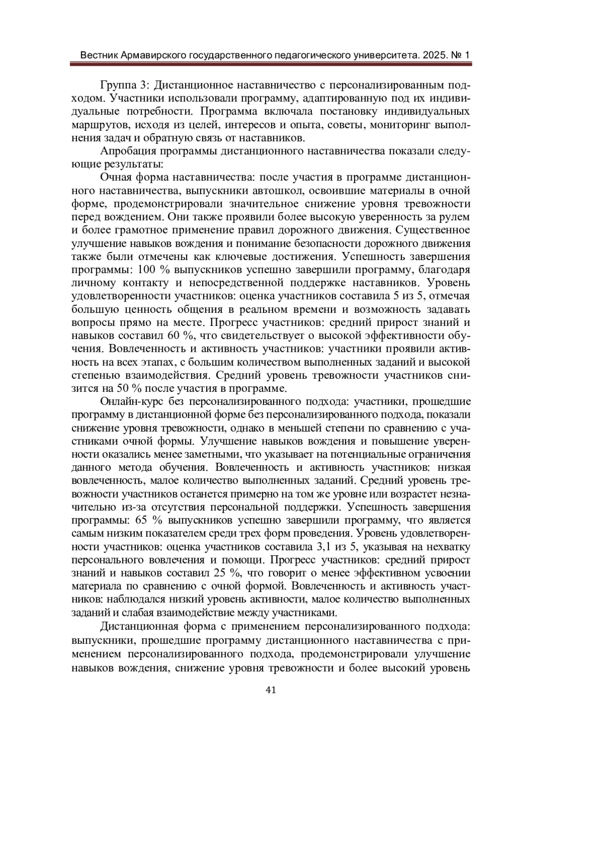ЗАЙЦЕВА Л. А., КРАСИЛЬНИКОВА Н. В., КЛЮЧКО Ю. С. ПЕРСОНАЛИЗИРОВАННЫЙ ПОДХОД В ДИСТАНЦИОННОМ НАСТАВНИЧЕСТВЕ ДЛЯ ВЫПУСКНИКОВ АВТОШКОЛ // ВЕСТНИК АРМАВИРСКОГО ГОСУДАРСТВЕННОГО ПЕДАГОГИЧЕСКОГО УНИВЕРСИТЕТА. 2025. № 1