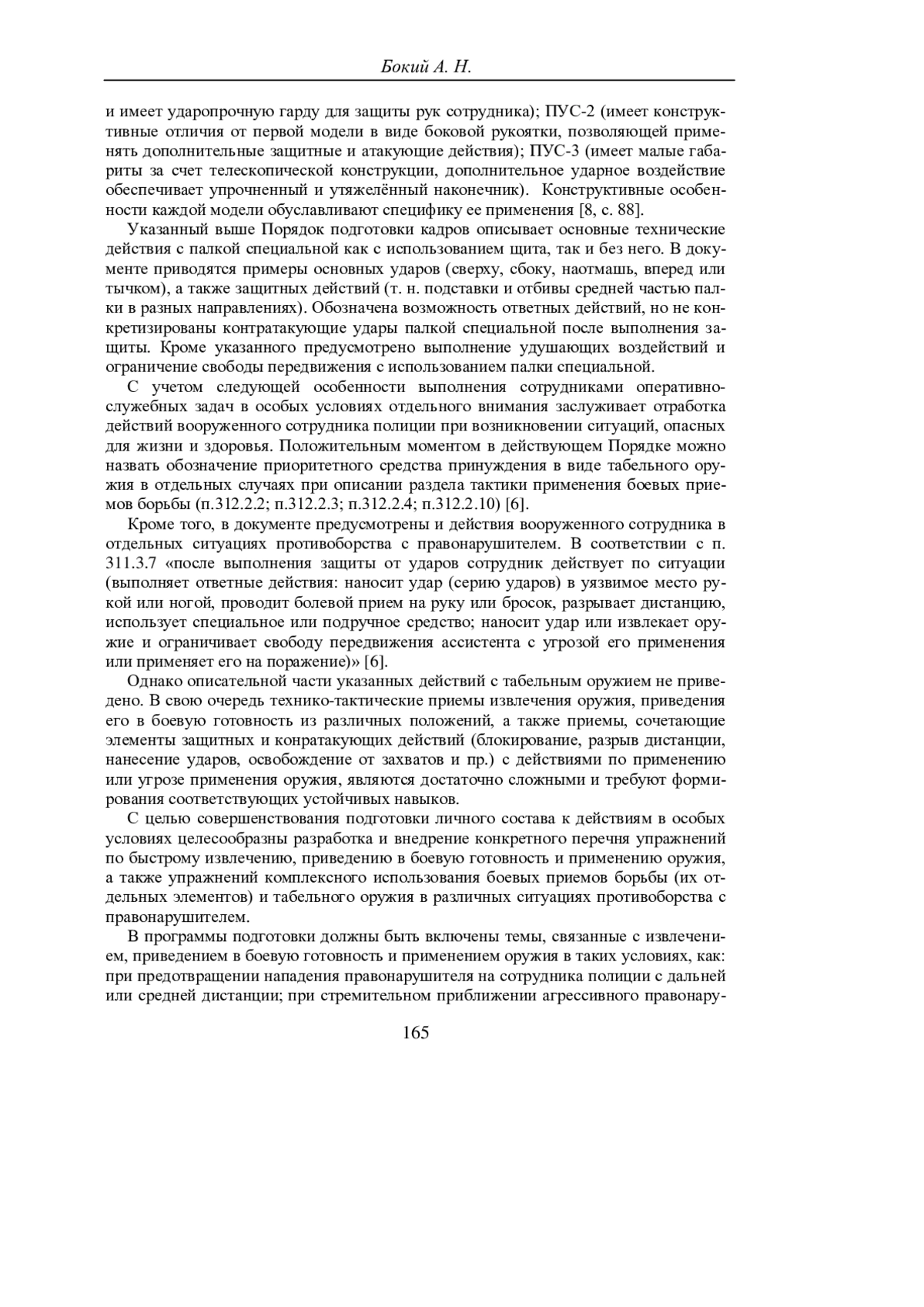 4. Бокий А.Н. Подготовка сотрудников полиции к применению физической силы, специальных средств и огнестрельного оружия при выполнении оперативно-служебных задач в особых условиях: учебно-методическое пособие. - Симферополь: КФ КрУ МВД России, 2024. - 71 с.