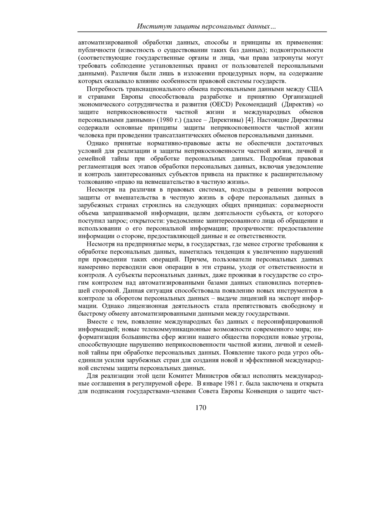 4. Основные положения Организации по экономическому сотрудничеству и развитию (ОЭСР) о защите неприкосновенности частной жизни и международных обменов персональными данными от 23.09.1980 // https://4people.grfc.ru/analytics-and-legislation/international-and-foreign-acts/internationalacts/rukovodyaschie-principy-oesr-po-zaschite-konfidencialnosti-i-transgranichnym-potokam-personalnyh-dannyh/(дата обращения 24.11.2024).