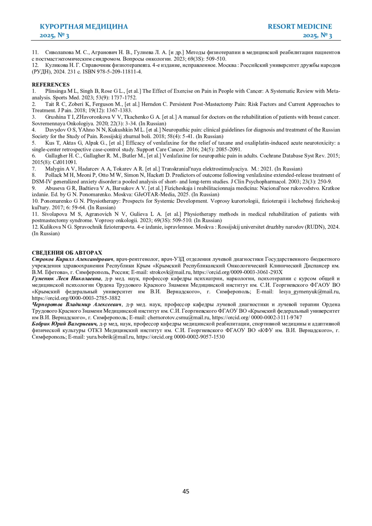 Журнал: КУРОРТНАЯ МЕДИЦИНА