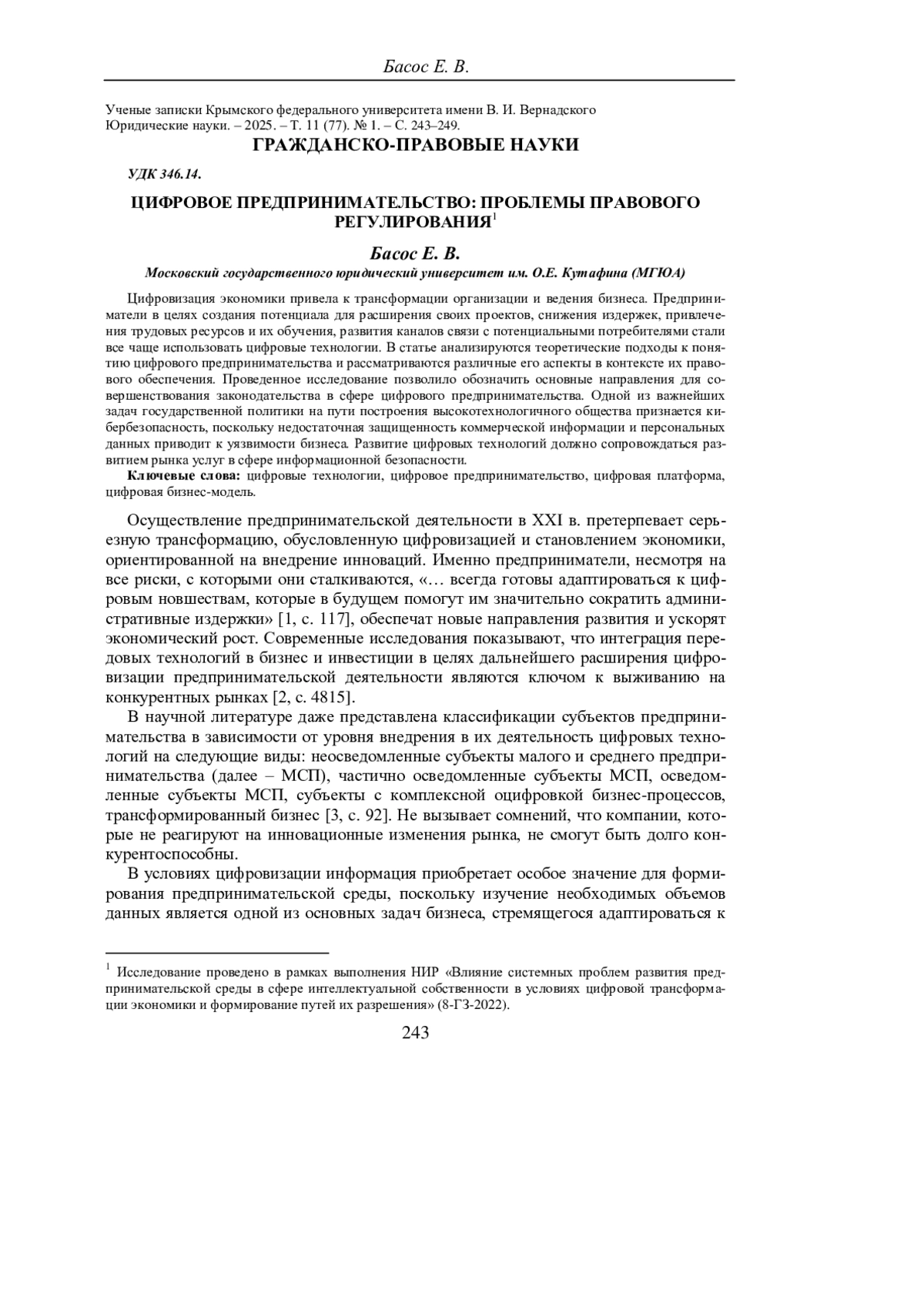 Осуществление предпринимательской деятельности в ХХI в. претерпевает серьезную трансформацию, обусловленную цифровизацией и становлением экономики, ориентированной на внедрение инноваций.