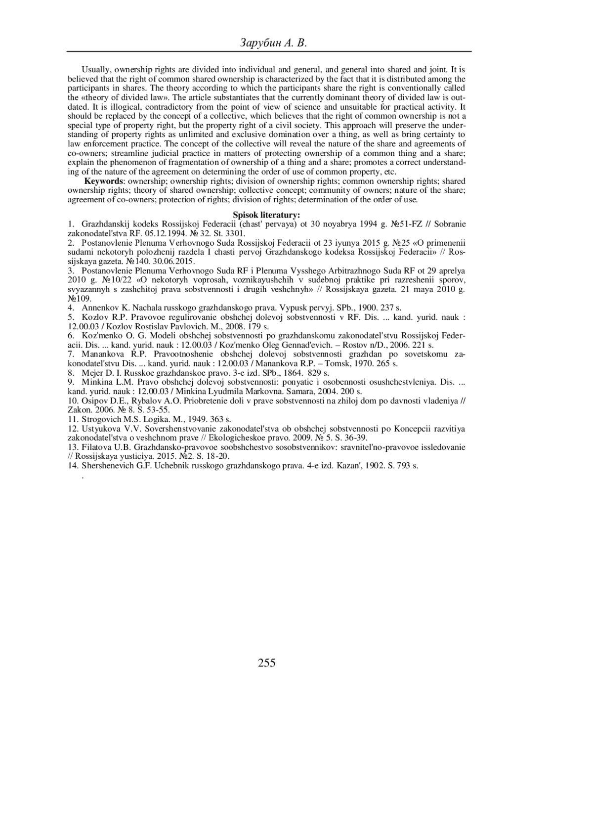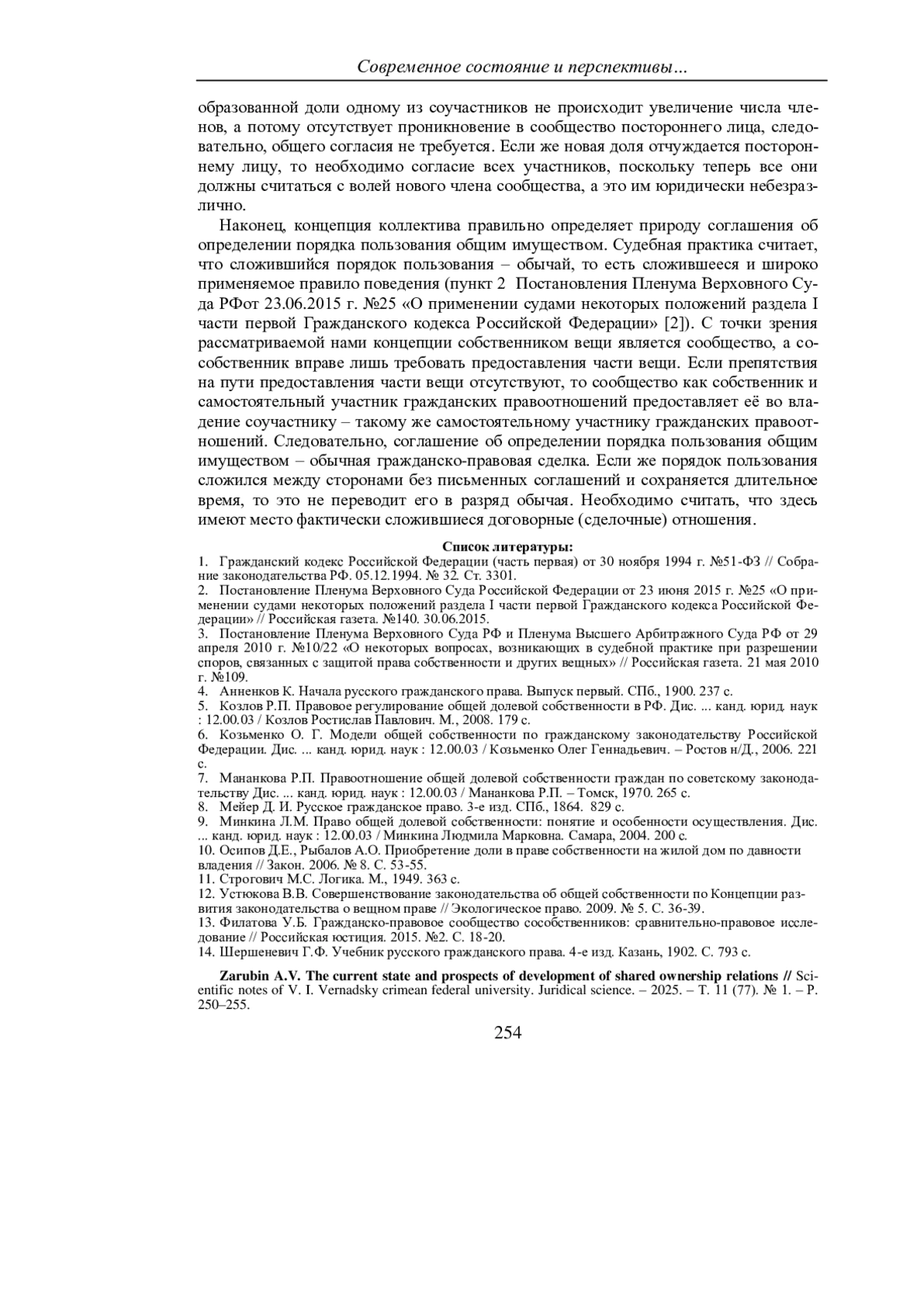 13. Филатова У.Б. Гражданско-правовое сообщество сособственников: сравнительно-правовое исследование // Российская юстиция. 2015. №2. С. 18-20. EDN: UHVMQD