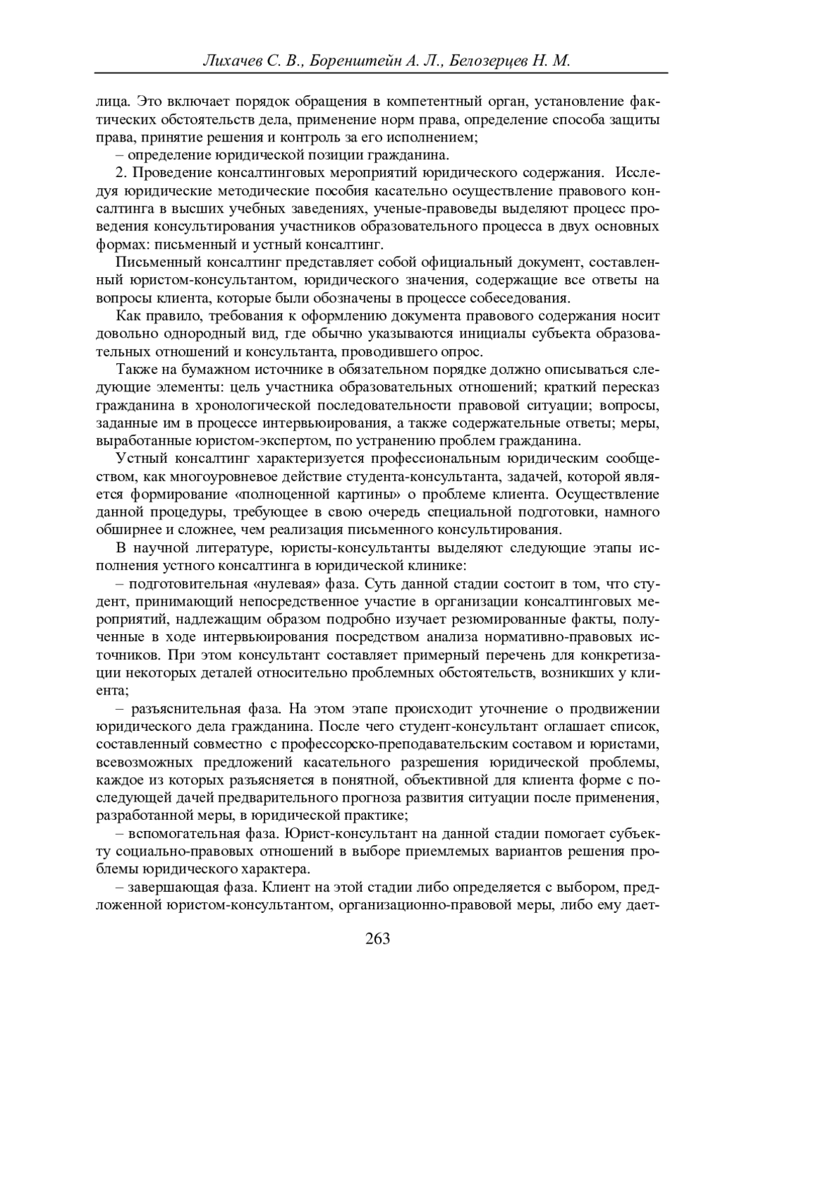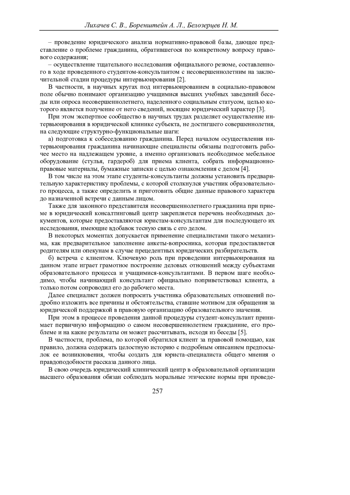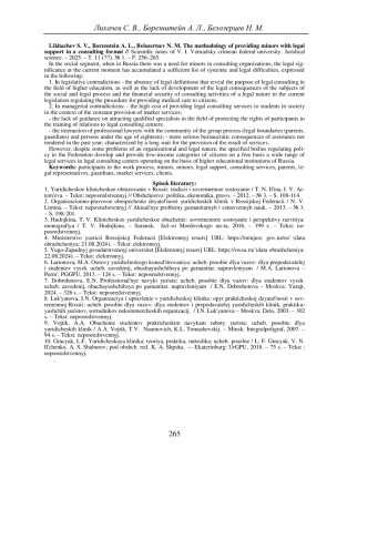 Как показывает современная юридическая практика, предоставление лицам, не достигшим совершеннолетнего возраста, консалтинговых услуг в правовых клинических центрах происходит поэтапно. Основная роль в организации определенной схемы по оказанию юридического консалтинга в социальном секторе рыночных услуг при этом отводится начинающим специалистам-правоведам и юристам консультантам [1].