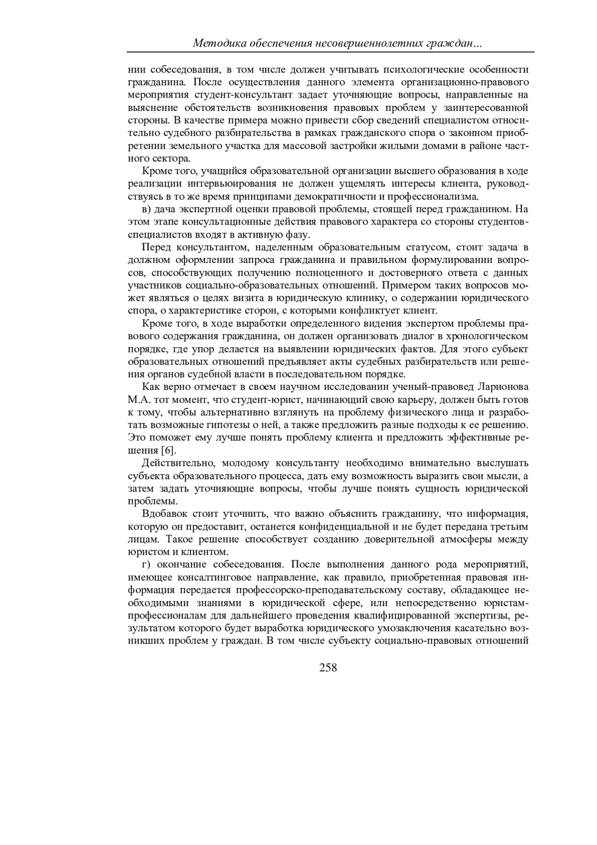 6. Ларионова, М.А. Основы юридического консультирования: учеб. пособие для вузов: для преподавателей и студентов высш. учеб. заведений, обучающихся по гуманитар. направлениям / М.А. Ларионова - Пермь: ПГГПУ, 2013. - 124 с. - Текст: непосредственный. EDN: UGOZGD