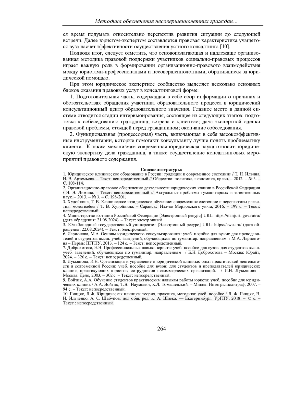 10. Гинцяк, Л.Ф. Юридическая клиника: теория, практика, методика: учеб. пособие / Л. Ф. Гинцяк, В. Н. Ильченко, А. С. Шабуров; под общ. ред. К. А. Шпека. - Екатеринбург: УрГПУ, 2018. - 75 с. -Текст: непосредственный. EDN: XUGTHN