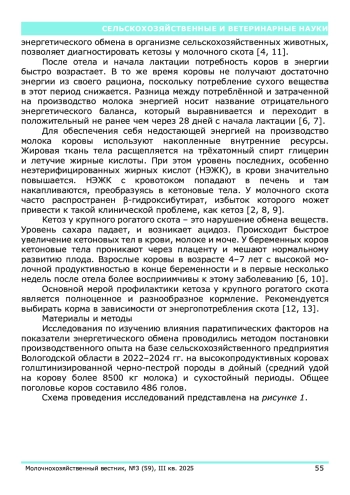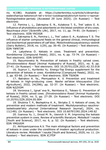 19. Шубина, Т.П. Кетоз коров, его профилактика и современные методы лечения / Т.П. Шубина, А.А. Безлепкина, З.В. Скрипка // Международный научно-исследовательский журнал. - 2024. - № 11 (149). DOI: 10.60797/IRJ.2024.149.62