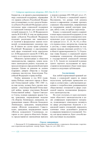 1. Васильева Ю. В. Кодификация российского законодательства о социальном обеспечении: теоретические и практические проблемы : моногр. Пермь : Перм. гос. ун-т, 2009. 363 с.