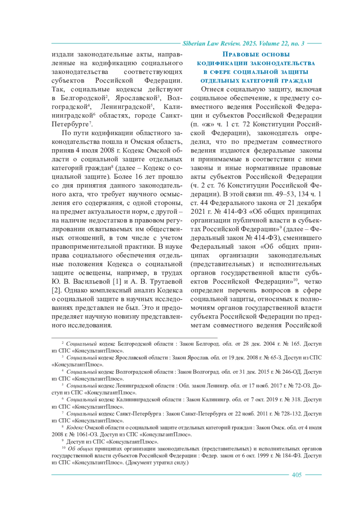 4. Григорьева Н. В. Сравнительный анализ кодифицированного социального законодательства субъектов Российской Федерации // Юрист. 2023. № 7. С. 43-48. https://doi.org/10.18572/1812-3929-2023-7-43-48