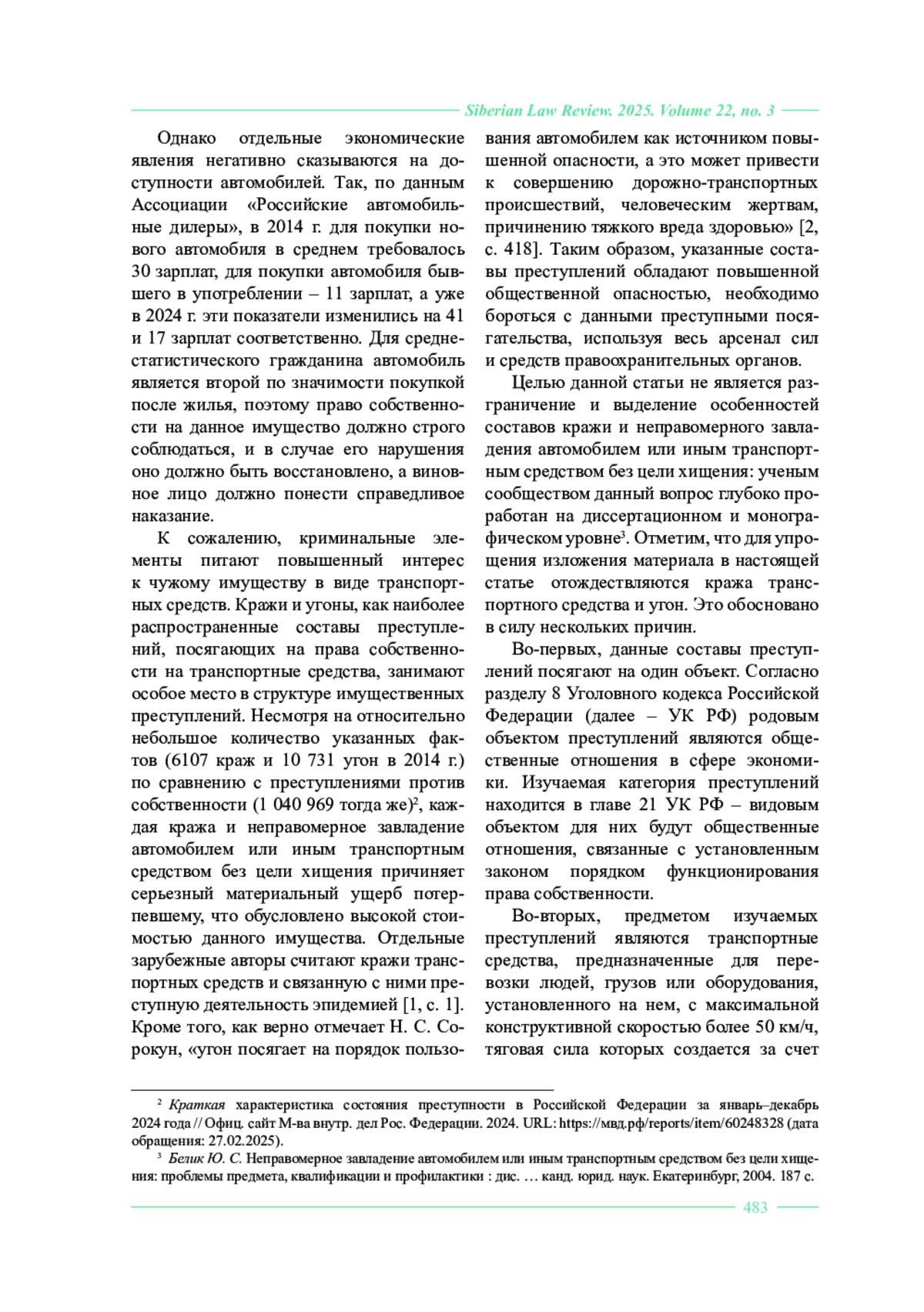 2. Сорокун Н. С. Характеристика неправомерного завладения автомобилем или иным транспортным средством // Управление деятельностью по обеспечению безопасности дорожного движения: состояние, проблемы, пути совершенствования. 2019. № 1 (2). С. 418-421.